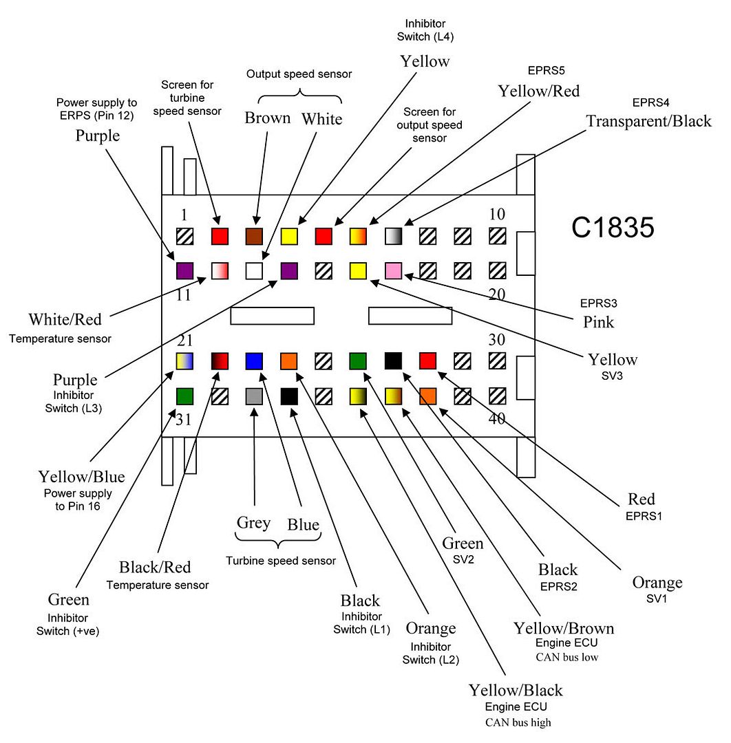 If this isn’t the issue, it could possibly be because there’s a problem with 3rd gear e.g. a problem with the D-brake. If you have some diagnostic kit that can read off live values for the fluid temperature, this would probably be your best bet. Alternatively, you can test the sensor reading between pins 13 & 14 at the 16-pin connector on the casing: ![]() ![]() ![]() or between pins 12 & 22 at the ECU: ![]() ![]() ![]() Phil |