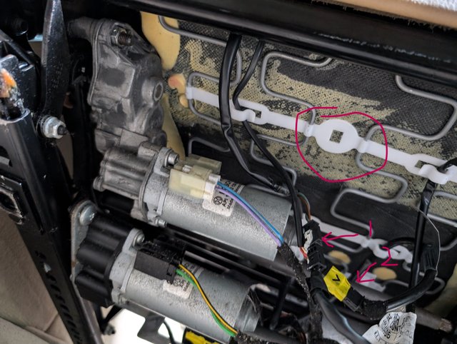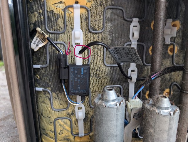 The seats that I picked up from fellow board member 5S0NG are finally reupholstered. Aside from the fact that this took way, way too long, I think I want to move into the car for good they are so comfortable. New foam on the bottoms, new leather bolsters and headrests, and new Uberkaro fabric from member Bimmerbreaker (ASC Fabrics) for the center sections. The upholstery guy built up the center sections with extra batting which makes them super comfortable, I think the combo of leather and uberkaro looks great (my own version of the $4000 Porsche 911 "heritage" upholstery option), and man they are comfortable with the new lower foam and extra padding in the centers. Unfortunately, the leather bunches up a bit when the seat back articulates forward, and they could be a bit tighter in other places, but after 2 years I was just happy to have them back. The pic below is with the all functions of the seats adjusted full forward to help get to the rear bolts. The headrest, on the other hand, are way nicer than OE with new leather and electric adjustability. Super happy overall. I'd gotten used to the insanely poor shape my OE seats were in and can't believe how nice these feel. It really helps that the upper back is adjustable and the upholsterer put the steps in the uberkaro in the right places for support. Heat is very nice too and works great. My OE seats didn't have heat, but I got the correct control panel off of ebay and the guy steamed pads off the old foam off and glued them onto the new foam. Eventually my plan is to put the uberkaro in the centers of the rear seats too. ![]() The swap was easy, except for the fact that I'm left with an airbag light on the dash which was initially for the seat belt tensioners and the Seat Occupancy detector. The tensioner codes reset with the foxwell, but the occupancy detector has not. After digging into it more today, it looks like the new seats don't have the same occupancy detector as the old ones. I believe the new ones are post LCI comfort seats, which on RealOEM show having the same basic mat and little box under the seat, but in reality the new ones I put in don't have this small box anywhere that I can see under the seat. So, I'm left to assume that 1) the mat has failed or 2) the module is looking for the small box and not finding it. Old Seat with the plug to the small (black) box that is labeled "occupancy sensor " in real oem circled: ![]() New seat with the spot circled where it should snap into, but simply isn't there. The arrows in both pics point to connectors that run into the seat, presumably to the occupancy detector mat and heat mat. They are unfortunately different between the old and new seats, making it impossible to simply plug the little box into the new seat wires: ![]() If whatever module that controls this stuff is looking for this little box and cant find it, perhaps I could swap or splice in the one in from my old seat and install a resistor that is available on ebay to clear the code and airbag light by fooling the car into thinking the seat is occupied. Or, I read on the E39 forum that the airbag light and code for this problem can be switched off in INPA, Foxwell, etc. I've messaged 5S0NG as I'd like to get the VIN that the seats came out of so I can figure out exactly which diagram to look at on RealOEM. Hopefully he's up on the board still. Anyone have any experience with this issue?