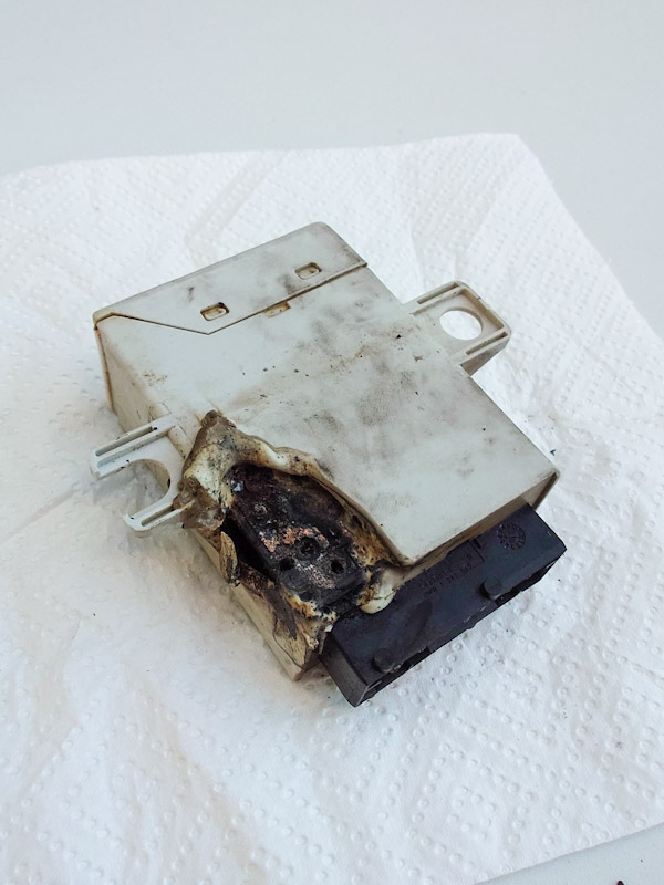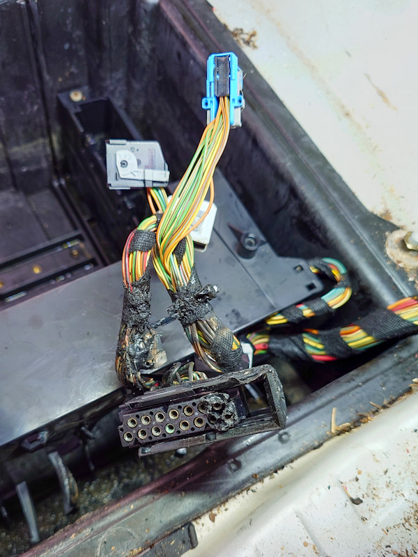 I bought a 2005 Diesel about 3 weeks ago and so far it's been great. I had to park it outside 2 nights ago and it rained but I wouldn't say a lot. Anyway the next day I used the remote to open it up which worked fine but then the remote on the kep no longer worked so I thought the key must be stuffed. So I drove to the shops and back without any issues. When I got home and parked the car, again facing up hill, my wife later said "did you know the indicator lights are still on?" I went outside and checked and sure enough the lights were coming on/off weirdly. Having had rain and having the panoramic sunroof my heart sank and immediately I knew it was water damage. I checked the boot and sure enough a bad electrical smell came out. The left wheel well space had water in it and the previous owner had put and amp in the right wheel well which had the electrical smell coming from it so I thought I'd just cooked the powered sub. Being dark I left it alone. Today I drove it into the garage and started my investigation. The battery well was half full of water too and so I pulled the battery out and started sucking the water out with a wet/dry vacuum. After pulling more of the battery compartment apart I discovered a module which was completely fried and was the source of the electrical smell. I was gutted! So I managed to get it off the wiring harness even though it had melted the connector a bit and found out it was the trailer control module. Ok ok phew! That's not something I will miss for a while as I can hopefully salvage one from a yard as long as those modules haven't been underwater either. So before I reconnected the battery I decided to check the fuses in the boot on the right of the car and found the remote fuse blown which explains why the key remote no longer was working. Down to the shops and a new fuse which blew straight away. So something else to do with the remote lock/unlock function has probably also been water affected. Where do I look now? Pics of the carnage below. Cheers Last edited by Homerlovesbeer; 03-21-2025 at 03:54 AM. |