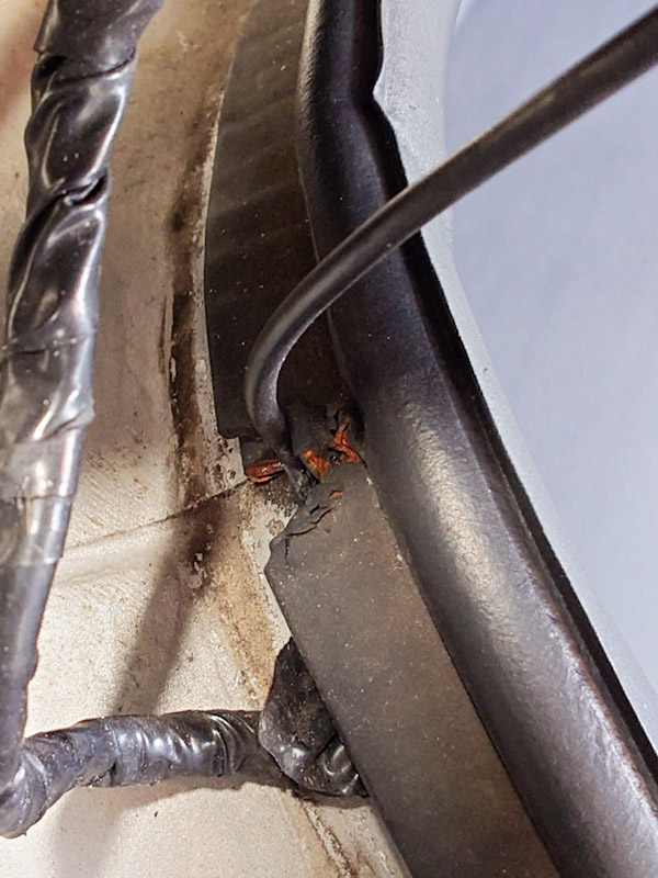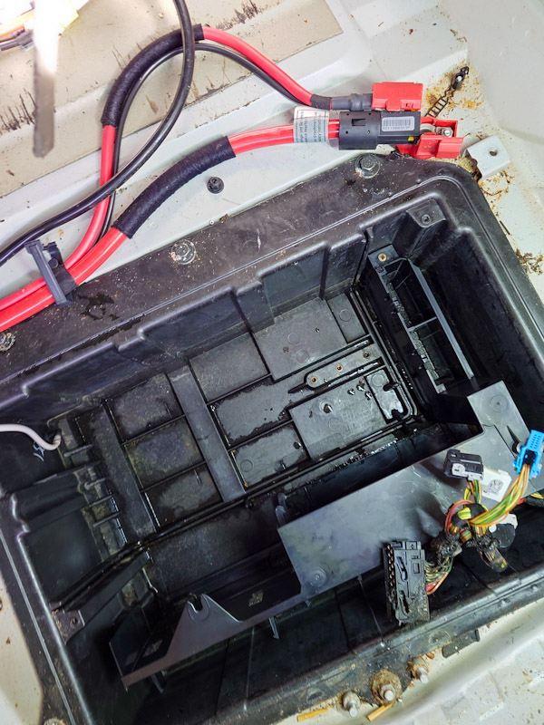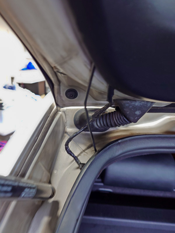 I think this may be one possible source of the battery box filling with water. The previous owner did a dodgy rear camera install?