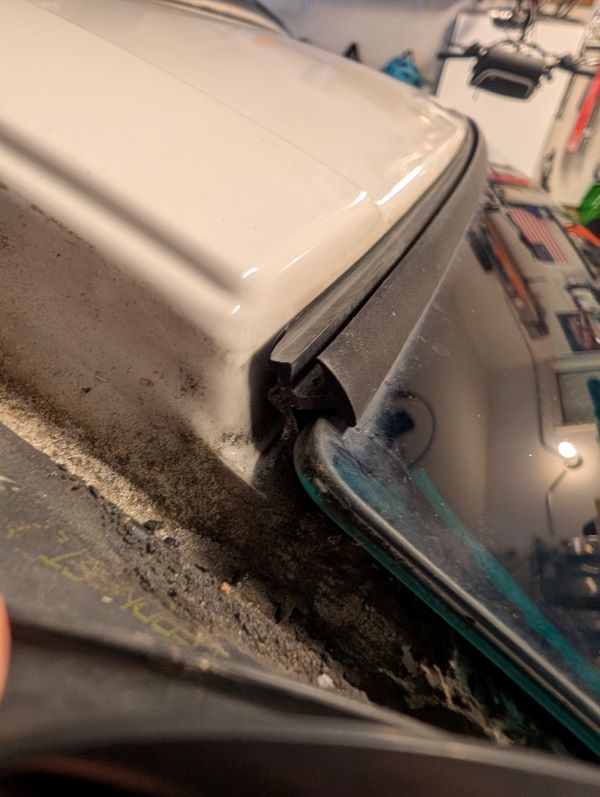 I'm chasing down excessive wind noise and the weatherstrip at the top of the windshield looks strange. Is this how it's supposed to be installed? The glass is not factory.