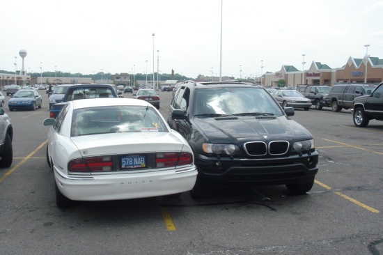 Okay, I was soooo shocked by this that all I could do was take a picture. I just happened to walk out and unlock my X5 when an older woman walked blissfully away seemingly completely unaware she just did this: