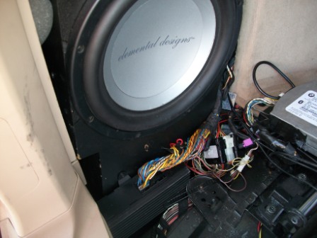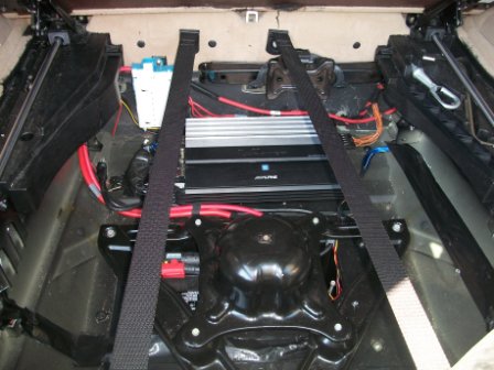 Nonetheless, the subwoofer and amp wiring all installed and ready to go... |