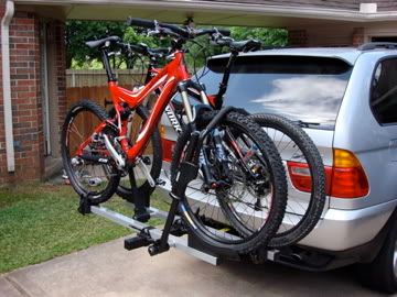 Donovan - I just got myself a hitch mounted rack since it's a pain to get the bikes on top, plus i'm only 5'10 and I would have a hard time loading the bikes. I used to just throw my bike inside the vehicle but that got old quick since the interior was getting dirty. Here's a pic of the hitch rack (Thule T2) and a picture of our Isuzu Trooper that was rigged for 2 bikes inside. Hope this helps!