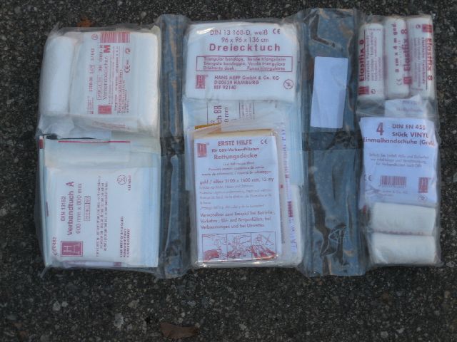 For the first aid kit I used a large zip-lock bag and filled it with medical supplies that I chose from the local pharmacy. I was able to get higher quality and fresher medical supplies that were useful to me.