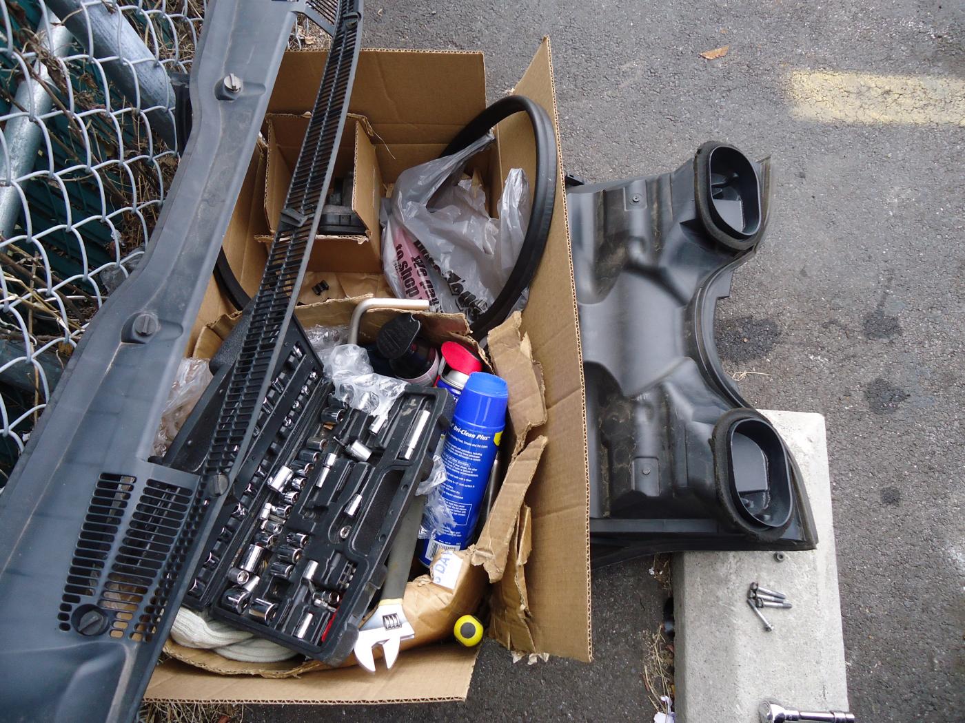 the ignition coil. It is tricky, but not too bad. We need to unclip all the connectors so we can move these electronic boxes out of the way. There is a box on each side of the engine. Pull out (most of the plug sensors) and the knock sensor(3) connector. Loosen (4) 10mm nuts and you got yourself a loose box! Be careful pulling them out yet. You will need to take out the connectors that hook to the injectors. Take a look at the bottom of the box, you will see 4 injectors hooked up on each side. Uncliping is a pain in the (S) specially the two last injectors by the firewall inside, but with a little plier, you can open the thin metal clips and once you unclip the metal, injectors may pull out free easily from the electronic box wires. I was by myself guys! and this was inside the parking lot of autozone 3 miles from my house. imagine trying to finish on time so, my car won't stay there overnight and taking pictures at the same time. |