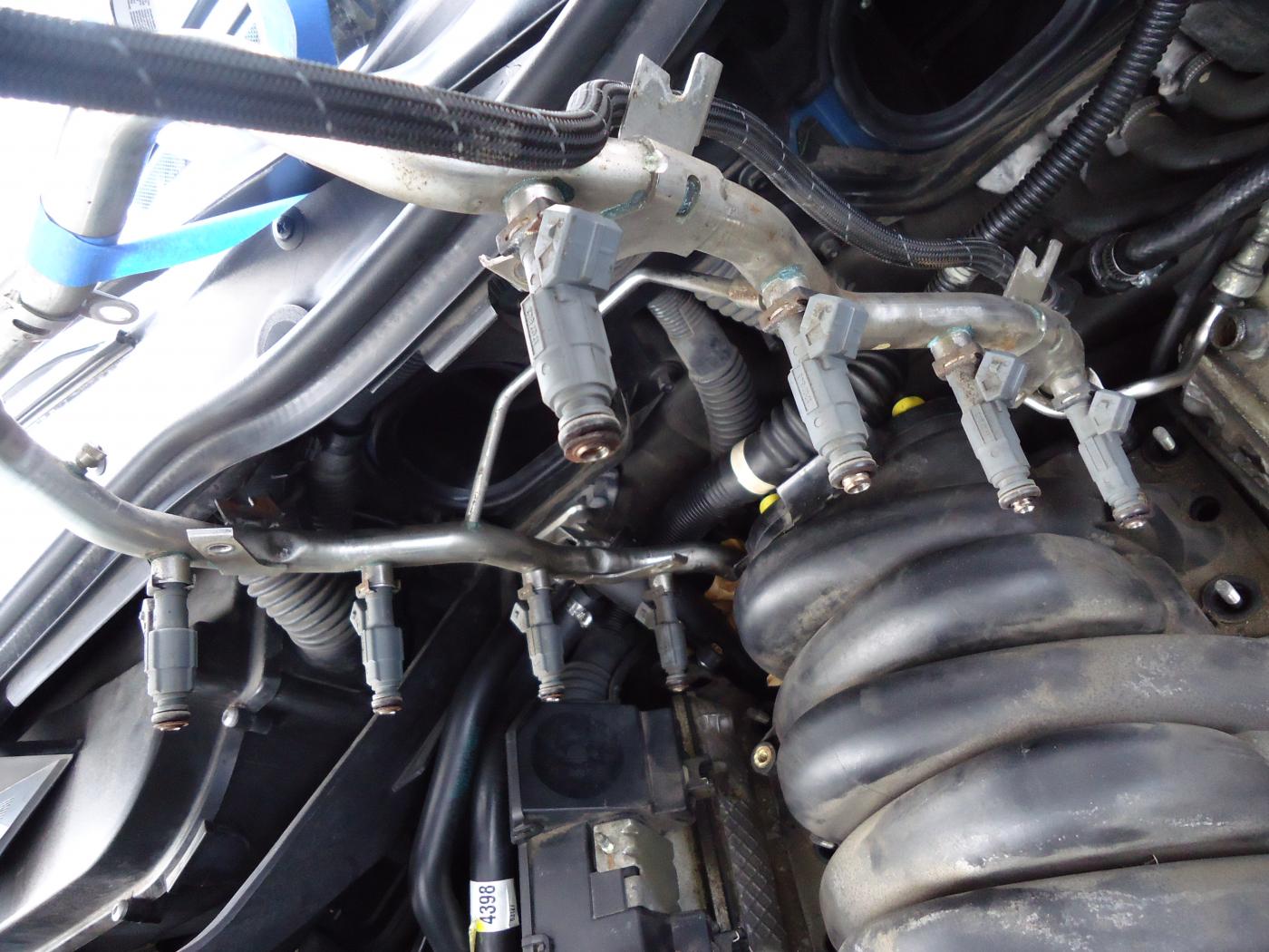 4 injectors hooked up on each side. Uncliping is a pain in the (S) specially the two last injectors by the firewall inside, but with a little plier, you can open the thin metal clips and once you unclip the metal, injectors may pull out free easily from the electronic box wires. However in my case, I removed all of them completely and do not use them anymore, because I found it more easy for future removal. And once you screw the two electronic box on top, they holds tightly connected on top of the injectors, so there's no need to have an extra ignoring clamps there to keep injectors in place.