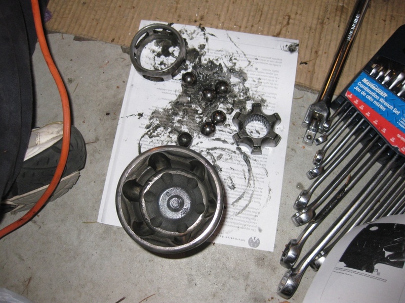 5) remove the C clip from the inner bearings (3 wheeled thing)