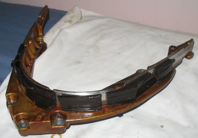 Lower chain case cover removal and reinstallation (M62TU) - Bimmerforums - The Ultimate BMW Forum ...and what happens when things go wrong: Broken Crank bolt removal - LS1TECH Having no desire of extending this project into removing a broken bolt out of the crankshaft I took this task seriously and followed instructions given by nesikachad - if you happened to read this, thank you - your instructions worked great! The night before the new assault on the bolt I generously sprayed High Performance Penetrant in area around the bolt trying to reach behind its flange. Next morning I wrapped a strip of wet rag around the seal at the base of the crank snout and used a heat gun to heat up the hub (with the tool locking the crank shaft installed in place). After 5 - 10 minutes traces of white smoke began to appear around the bolt head - time for the action! I grabbed a break bar (this time it was 3/4") and put my weight on it. The bolt moved at about a half of the torque that took me last time to snap the square on my 1/2" break bar. Not bad at all - great advice, nesikachad! I have removed the special tool and the hub, still being warm, slid off of the sprocket without need of a puller tool.With this road block removed I kept planking on removing components on my way to the chain guides. It took some extra time to remove the lower chain cover - in addition to the 15 bolts shown on the diagram there are 6 more holding the cover from the bottom through the upper oil pan (they are shown on a different diagram). There is also one stud holding the power steering pump and the alternator housing together with a nut located at the back where there were absolutely now room for my hands. I had to move the cover with the pump attached to create some room and only then was able to remove that nut and free up the cover. ...Currently all the guides are off. After examination, in addition to a completely destroyed plastic of Deflection Rail (V-rail), I found plastic lining chipped away here and there on other components and planning on replacing all the plastic linings in the rails. I will install new: Deflection Rail, Chain Tensioner, and the Guide Rail, but planning on replacing only Sliding Pieces (4 of them) in the upper chain Tensioners. ...Not too much I can do now before these parts show up. |