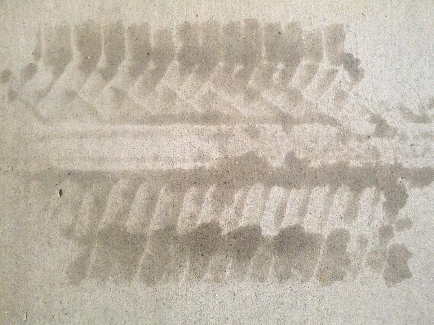 If you can SLOWLY drive/push your X through VERY SMALL/THIN sheet of water, when you come out of it, onto the dry concrete (concrete works better then asphalt) you will be able to see the contact patch of your tires. My guess is the two outside areas of the tire will not make contact with the water or transfer the print to the dry area. Still tho, if this is the case I would not suggest lowering the tire pressure. |
