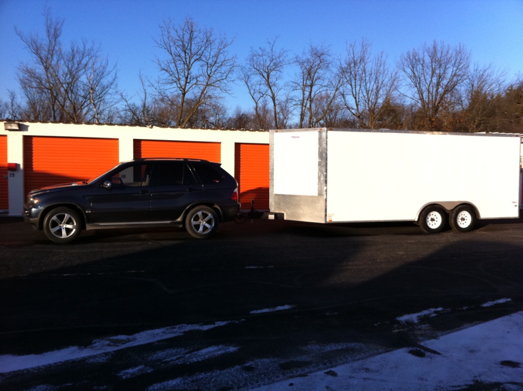 It was a quick pic from the iPhone, at dusk as the sun was setting so not a great pic. And I was laughing as I was towing it home- the X5 has the winter 18" TSW wheels and snow tires on it, and there was a fresh dusting of snow on the ground. And it still towed nicely. It'll be a lot better come spring when the 19's go back on.
