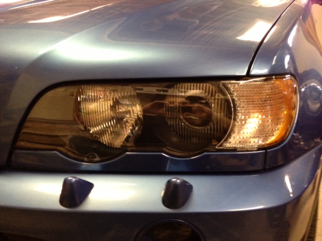 Finally got around to a headlight restoration. My wife hit our mailbox in my car the day after I bought it so there was paint on the passenger side headlight. Looks much better now! NINJA EDIT: You can kinda see where she hit on the passenger side, the orange filter has a hole where it broke. T_T