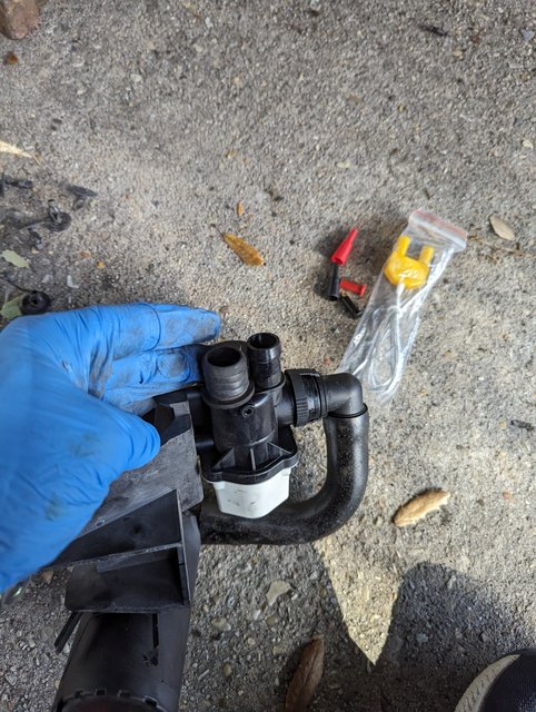 I had a fuel leak diagnosis pump and dust filter on hand too and since I wasn't hearing any noise from the left rear wheel well when I tested that system, I decided to pull the liner and replace them yesterday. I also did not want to get back on my old house window rehab project I've been working on for ever. The breather valve and the leak detection system are the only things that tie into the carbon canister, so I figure potentially a problem with one system, could be causing an issue with the other system and popping the code. The liner comes out easily, and I've gotten smart enough over the last year or so to have a supply of blind rivets and the small exterior screws with washers on hand before jumping into exterior work that requires trim to be pulled. Happily all the plumbing looked factory new, as did the brake lines that run through there, and no rust to be seen at all. 20 years worth of dirt and grime to clean out though. ![]() I tested the new pump for continuity and then screwed it to the bracket (three torx) and popped in the new filter. There is a rubber piece that fits over the pump nipple and makes the tight connection to the "filler breather" tube. Don't toss your old pump before removing this and moving it over to the new pump nipple. It doesn't seem to be sold separately so it must come with the breather tube, not the pump. Pic below shows this fitting, next to the nipple on the pump that it fits on. The tube won't fit without it: ![]() The new pump "clicked" on and off with the foxwell test so I buttoned it up with new blind rivets and some replacement screws for those gone missing over the years. I'll toss my new breather valve in when it arrives next week and hopefully no more SES lights or codes. I'm not sure what else is left beyond bad wiring, broken tubing somewhere, or a bad charcoal canister (not sure how I would know this. All would be a lot more painful than replacing the above parts. The cost of a new canister is a bit painful to contemplate for a part that doesn't buy any more fun or upgrade when replaced. Interestingly, I didn't smell a gas odor from the pump, dust filter, or any of the plumbing when I had it apart. I suspect the pump hasn't been working for years. Update: the new breather valve arrived and I popped it in. The insulation on that wiring is super brittle. It tested fine with the foxwell (clicks on and off) and hopefully will be the fix.