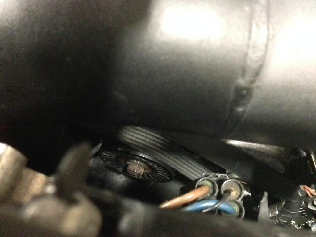Replaced supercharger belt. ALSO, and kind of a BIG deal to me, shimmed out the tensioner pulley with a couple washers behind the inner race of the bearing. Dinan had a washer there but was incorrect width. Belt alignment is finally perfect.
