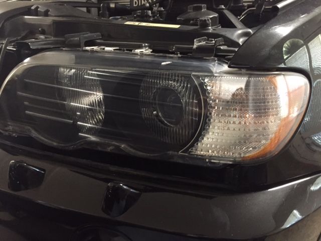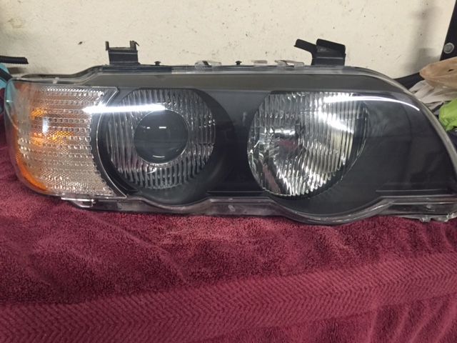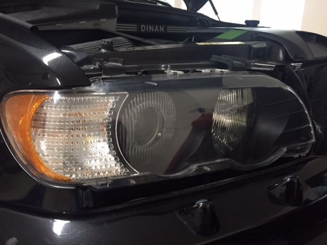 Yes I got tired of the yellowed clear coat that some previous owner did to grace this X5 4.6is. So this afternoon removed both headlight cans, placed them on my workbench started to wet sand with a 400 paper, progressed to a 800, then 1000, then 1500 and finally a 2000 grit wet paper. Pulled out the handy buffer some 3M micro finish compound. Following the compound did a Mezurna 4000 final finish and wallah. Sealed the lens to protect the finish and installed them back. Wow what a difference.