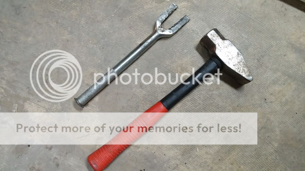 ![]() Here's my "pickle fork of power" and my BFH after beating my rear driveshaft into submission. That mofo was frozen on the output pin of the transfer case. After all the beating the centering sleeve still stayed on the output pin and had to be pulled of with a 3 jaw. On reassembly everything got a liberal coating of copper grease I assure you! ![]() ![]()