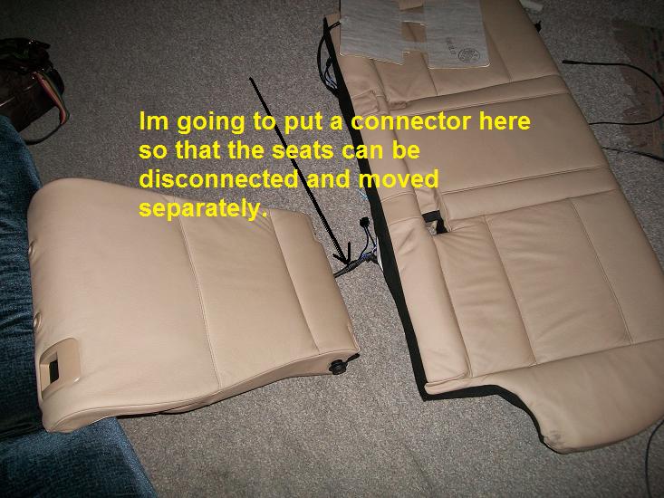 1. If the oem switch for heated seats is not in your X. You will have to buy it. Possibly ebay or parted out X like I did. Appears to be standard on 4.6's and 4.8's 2. scale of pulling out the carpet. 2. 2 being very easy. 3.Unbolting the seat is neccessary. They hid \ziptied the wire directly under the rear area of the front seat but they zip tied to the metal in the front. I pulled center console out because alot of threads on here said you had to. "After doing this I feel you still have to lift the center console up in the back because you still have to fish the rear heat seat wires back to where the switches mount." " sliding the seat wont get the job done" Nope look at the back on the ground of your front seat. You see the the airvent.. under it is a hump. That hump in the carpet under the airvent is where the wire is ziptied to the frame. Unbolting is neccesarry to gain clearance and to safely cut the ziptie. 4. HEHE both.. the heating elements I used are older from my kia sorento before I crashed it. It used the older 2 wire method. Most heat elements on the market nowadays are 3 wire design. mine werent. So Ihad to modify the circuit to allow 3 wire design ( thermistor). I wanted as oem look as possible. that meant wiring, connectors, switches. Most aftermarket heat elements you buy come with there own non oem switch like a rocker. if you do buy aftermarket and want to use oem switchs make sure you buy dual stage heating elements. Mine were single stage thats why I had to modify the circuit. ( BMW uses 2 different temps hi,med and off for the heating elements) kia only used 1 hot and off. If you want plug and play I think its $400 to $1,000 usd for used or new rear seat covers with the elements in it. Because BMW sews their elemements into the leather. Any more questions feel free to ask. my total= $100 for all the bmw connectors from stealership. Now we know part numbers about $24 - $50 bucks online. oem switches - ebay possibly $25 to $50 bucks mine were parted out - got 5 parts for 100 bucks 1 oem relay, 2 rear seat lights,2 rear switches, 1 cig lighter cover. oem relay - $5 to $10 bucks online hogring pliers and hog rings - $25 off ebay. heat elements I already had but originally $100 ebay about $120 to $150 new diagonal pliers/cutters $20 bucks at home depot- mine sucked had toget new ones made a whole lot of difference. 2 thermistors to make dual stage elements - $6.64 1 trip to stealer to reset the airbag light..- forgot to fully disconnect the battery terminal..just did the big ground wire.. $75 effing bucks. DOH. time and effort really 2 weekends 1 weekend to rip front seats out and center console out and search for wires but since I showed basic location could be done in 4 hours tops 1 weekend to pull out rear seats and install elements.. uhm first time.. now i know how to do it. possibly 1 whole day. 2 weeks of waiting on bmw connectors. 1 week of waiting in thermistors 1 week waiting for the parts to ship. so its really up to you. But like i said i am now looking into ways of cooling seats rear and front. like ac vents and thermoelectric. I may even use thermo electric sample to have heated and cooled cup holders Thermoelectric Device Demonstration Peltier Effect - Cooling - YouTube. heheh.