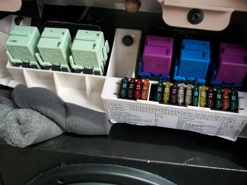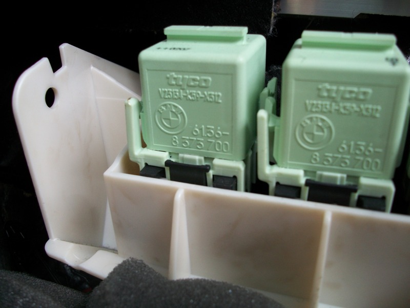 Is that what you are referring to? If so this pic might help you. Is this how the fuses area in the back of your X5 look. Mine has these relays. I bought the rear seat heat relay off a guy parting out his X. just to confirm you stated you have the wires under the rear seat. Okay you have half the wires right. Meaning to completeley remove you rear seat do you have disconnect any connectors. If no coonectors then that mean your rear seat doesnt have any heating elements. So thats another reason why the switches wouldnt work. Which means now you have to go out and do 1 of these. 1. buy heated seat elements Preferably a 3 wire design 2 buy a rear seat from a parted out x with the elements already installed. mainly 4.6 and 4.8 have them. Not my poor 3.0 3. Buy just the rear leather cover from a parted out X as i think the elements are sewed in. again i started this mod because i had some leftover seat elements from my last vehicle that i never installed. Let me know if you need the actual part number of that relay. Im sure real oem has it. OMG i am so glad i took this pic today. My fuses 80 and 81 have the wrong amps. There supposed to be 20 not 25. My x5 is going turn into a phoneix and burn up. Going to autozone now.