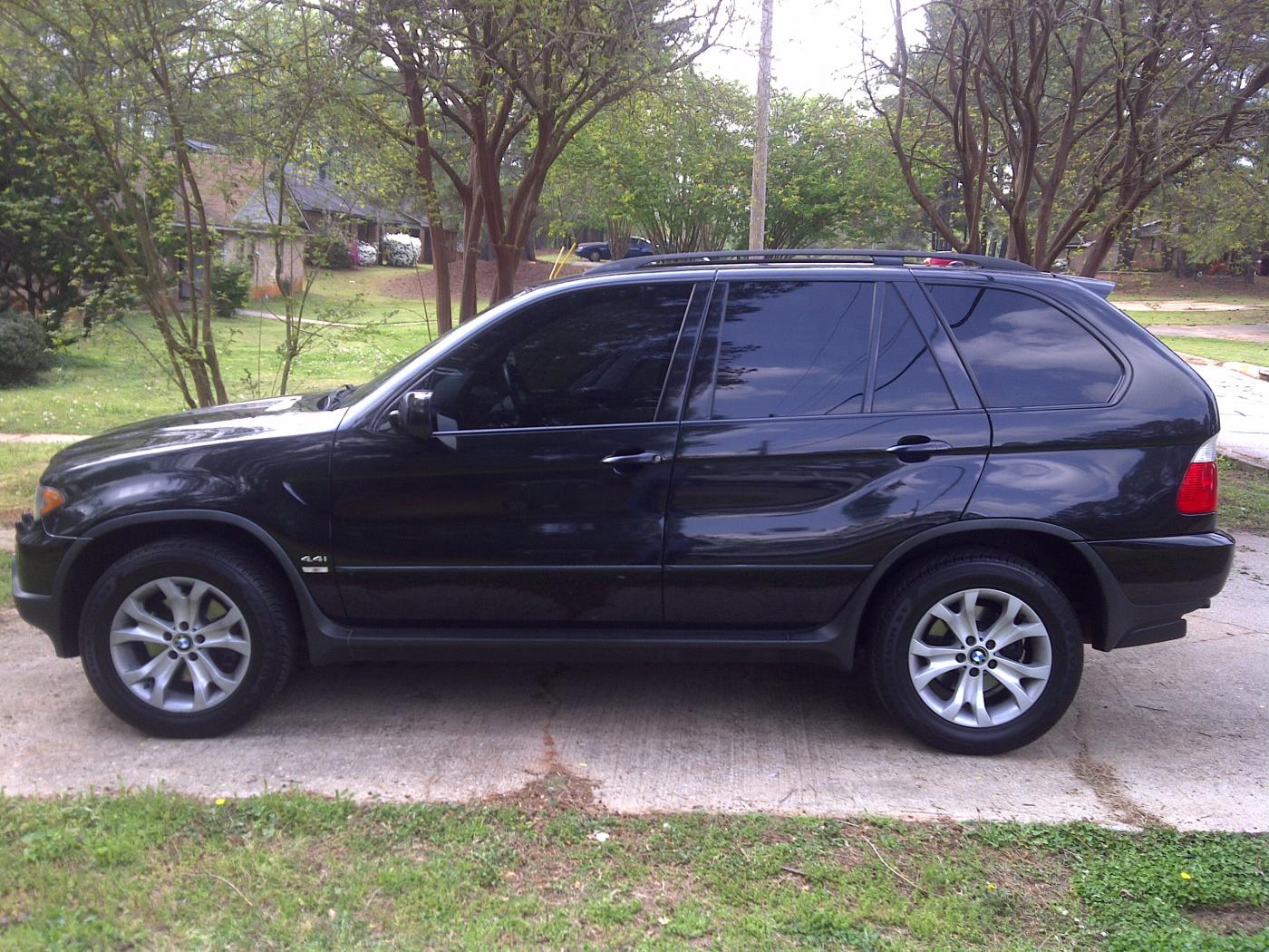 More gas mileage = more square feet to pimp x5 4.4i 2001 topaz blue x pipe rear window shades 20inch chrome 4.8is wheels angel eyes with color matched housing
