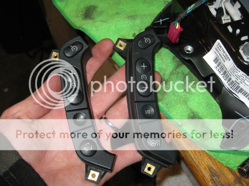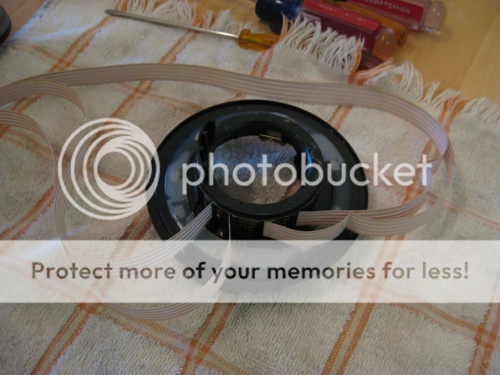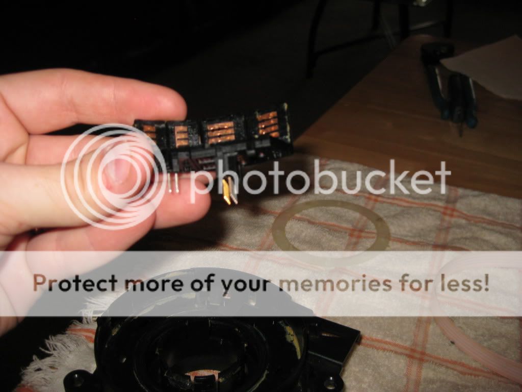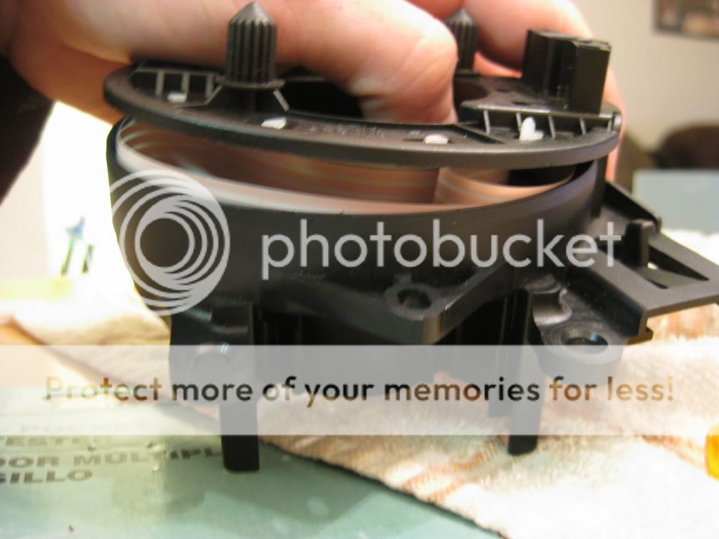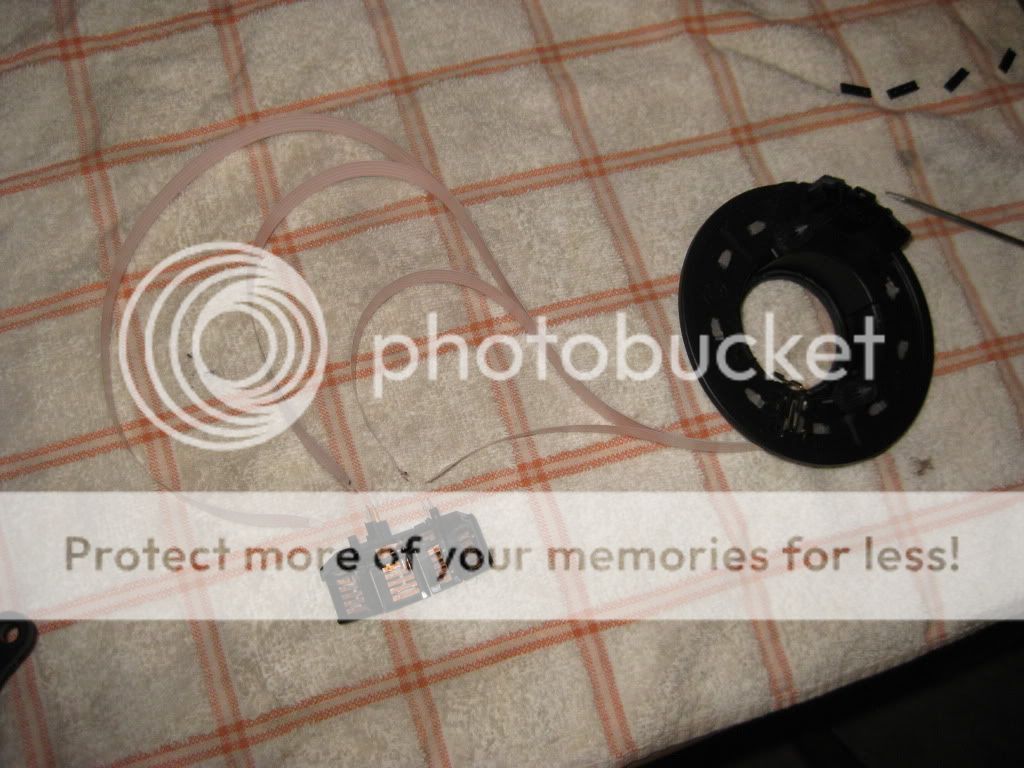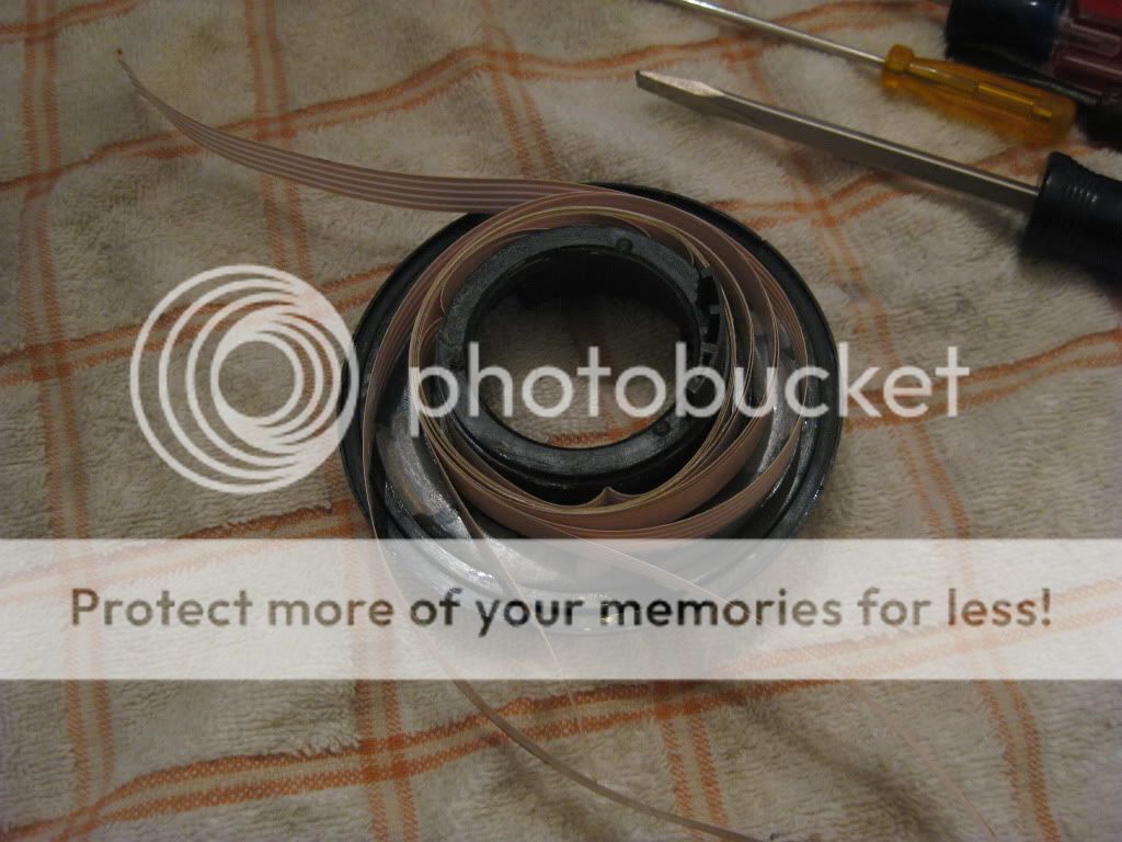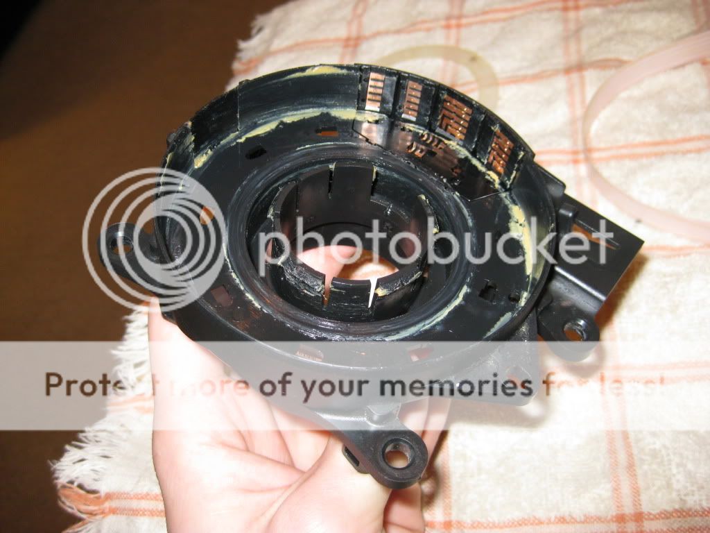 A clock spring is basically a way to wire power to the steering wheel buttons w/out the wires getting tangled or twisted when the steering wheel rotates. (I found this out). ![]() ![]() ![]() ![]() ![]() ![]() ![]() ![]() ![]() ![]() When I finally got it apart, the wire ribbons were twisted up and some had bends in them. ![]() ![]() This is the other half. The ribbons were supposed to be connected to that copper metal. ![]() Took me a little while to figure out what in the world was going on and how all this worked. ![]() I needed to find out if any of the ribbons were damaged. So I read the resistance of each individual wire in the ribbon to make sure the metal was still intact and not broken b/c of a bend or something. ![]() ![]() ![]() ![]() ![]() ![]() ![]() This is where all 4 ribbons ripped apart when I turned the wheel. If the clock spring was not wound up all the way tight, they would have never been pulled apart. ![]() ![]() ![]() ![]() So I sanded and stripped back the plastic so I could reconnect the ribbon to the metal. ![]() Then I soldered the ribbon ends back to the metal. ![]() Then glued the black plastic back over the ribbon. ![]() Here each ribbon was re-connected to its appropriate connection. ![]() ![]() Here I snapped all the connectors back together. ![]() Here its all wound back up. Almost done. ![]() ![]() ![]() All thats left is to stick it all back inside. And snap it back together. ![]() ![]() All Done ![]() Once I got it back in the car, it worked great. Before no green like b/c all ribbons had lost their connections. This was a very difficult and tedious process. To fix just the clock spring probably took 6-8 hrs. But would go much faster the 2nd time. I spend so much time trying to figure out what the heck was all this mess and how the heck did I get in the middle of it. I made sure when I installed the clock spring 2nd time around that it was not wound tight. From the tight position I turned it back 3 full turns. When driving it will never turn 3 full turns from center so I know there is no risk of destroying it again. Comments or Questions....let me have them ![]() |