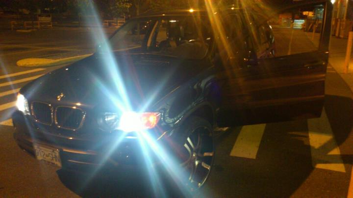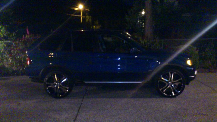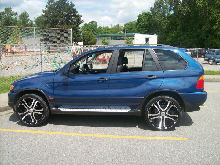 Hey guys, i've been on the forum for a good month or so now, and thought i'd introduce my self and pst some pics of my rides. I'm 21 and bought my x as my first car. 2002 topax blue x5 3.0i. Got it really cheap because the guy wanted a new style Ml350 lol no accidents no faults. Everything is good! Got a new alternator in december because i hit a puddle too, or river. I'm in Vancouver bc, so.. that explains it. Haven't done many mods other then the 22' rims, incubus 500, blackedout amber on the back light and side indicators. I orginally did the whole taillight, but police pulled me over so decreased it. Sorry no pics