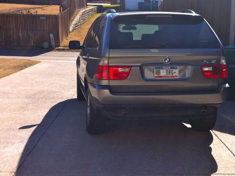 Mine was the same way. Read BMWs have a negative camber for handling. I took it to my alignment guys and they adjusted it back to where it looks normal from the rear. As your driving around town check out the x5 in front of you. Theirs looks just like yours. Happy new year!