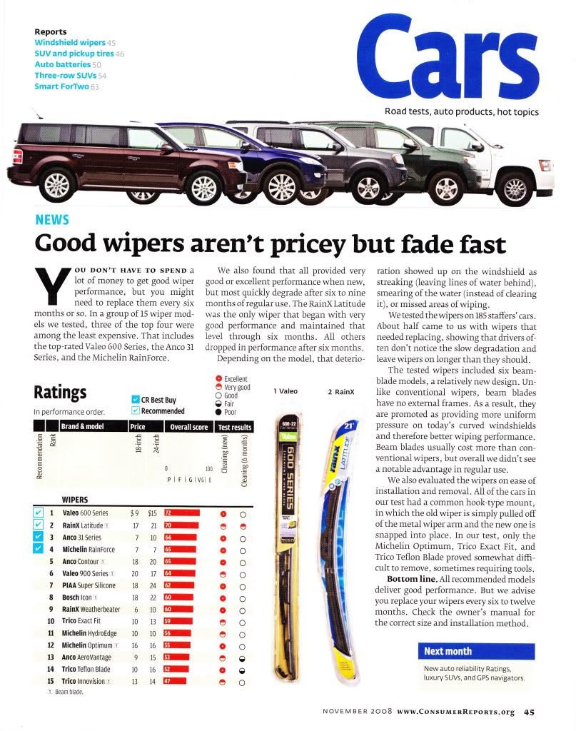 Updated post # 62 with all the relevant wiper blade information which hopefully makes selecting less confusing. And here's an interesting article from the November 2008 consumer reports.