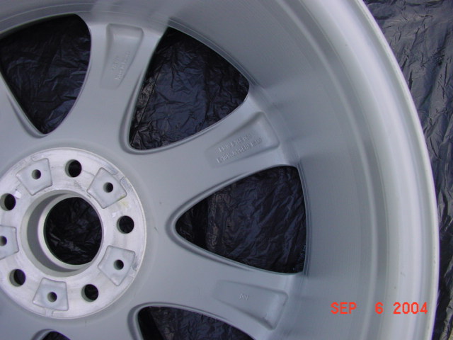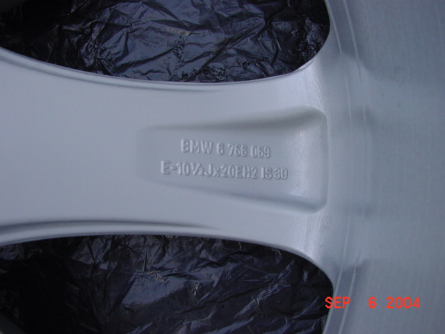 Below are pics of genuine 168 wheels. The size of wheel is right below BMW part #. |