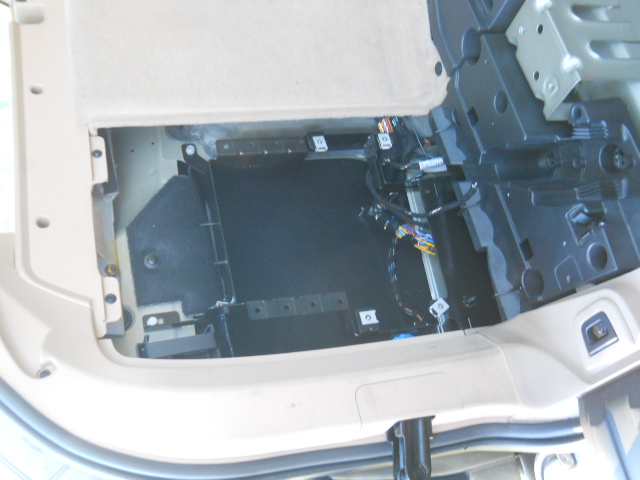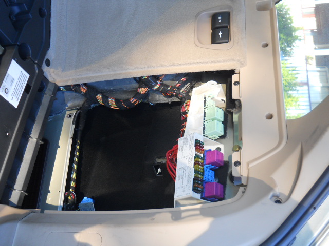 also, whatever was bolted into the compartment on the left side of the trunk has been taken. from other topics, i can see that this is where the Navigator DVD lives. There is an amplifier or such right down in the bottom of that compartment, and it seems intact, but is an unused blue plug and a handful of cut wires. again, any clues would help