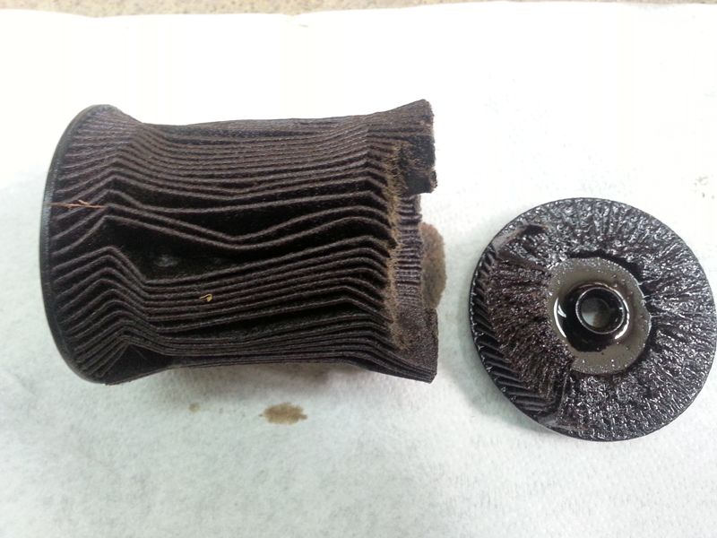 I did an oil change 2 days ago. Usually my oil filter comes out easily and in a normal shape, but this time it was a bit collapsed on the supporting cone and since that supporting piece has ridges on it, it was impossible to slip the filter out. I had to destroy the filter with my fingers (N62 engine, not a lot of space).