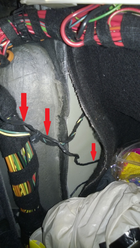 TurboBimmer said check the rear, when I opened the cover that gives you access to the fusebox compartment I found 2 thin wires red/black wrapped in black insulating tape(see pics) …didn’t have time to rip everything out and see where they lead to, but could it be possible these black and red are power to the gps or to the gps backup battery? Just struck me that the insulating tape was not wrapped in way the bmw factory would have wrapped it.....don’t ask why I want GPS tracker out….