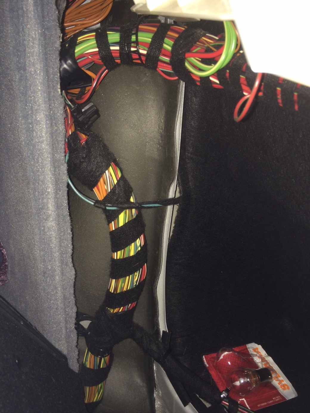 omodos, I have pretty much the exact same vehicle as you(mine is the I, not d version). My production month is exact same and color version is grey on grey too. I took this pic of my fusebox compartment for ya. I saw NO strange wires, wrapped in elect tape like yours. All my wires have a fabric-type wrap on them.