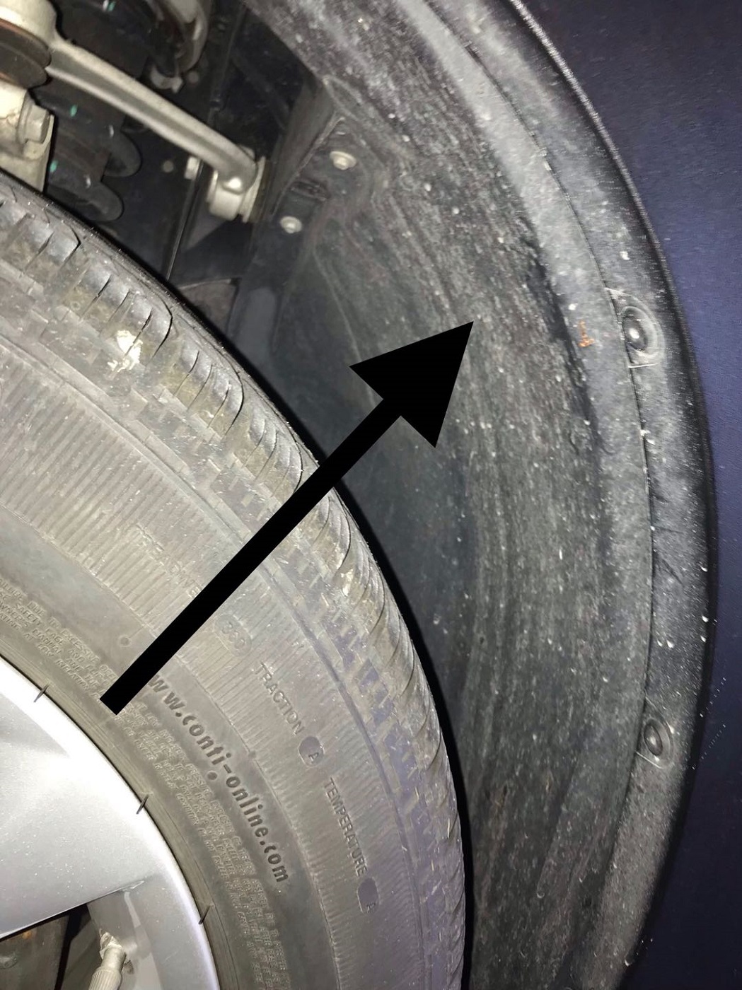 I believe from the lower wheel well area. You have to remove the plastic cover.