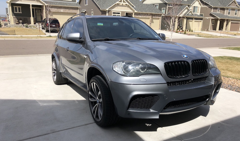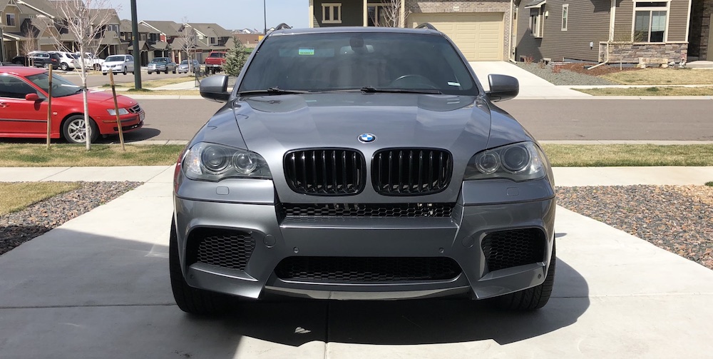 Unless heavy modifications were done this looks like a replica x5m bumper available for an lci model on ebay. I think he meant swapping out the plastic fender flares for painted not the front quarter panel / fender. Those are not x5m headlights, the ends taper off like an LCI.