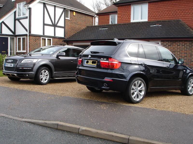 Picked him up in X5 last night, brought him down to mine swapped in to Q7 to go down to pub (because we could get all 6 of us in Q7!) Q7 is noiser (wind and tyre - and it is in smaller wheels than mine), engine is nicer in mine and he much prefers the inside of X5 so it's a thumbs up from him and by the way, he is more of an Audi man than I am. And I have to agree re inside, the Q7 they have lent me I configured on the Audi website this am - it is a £50k car and it really doesn't feel it.