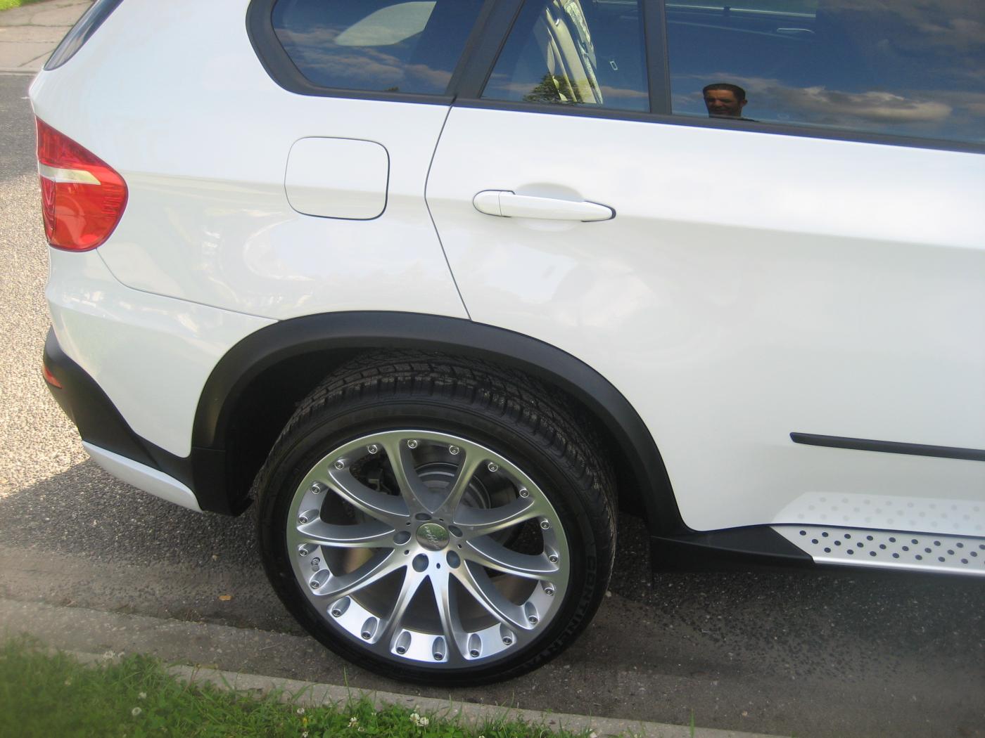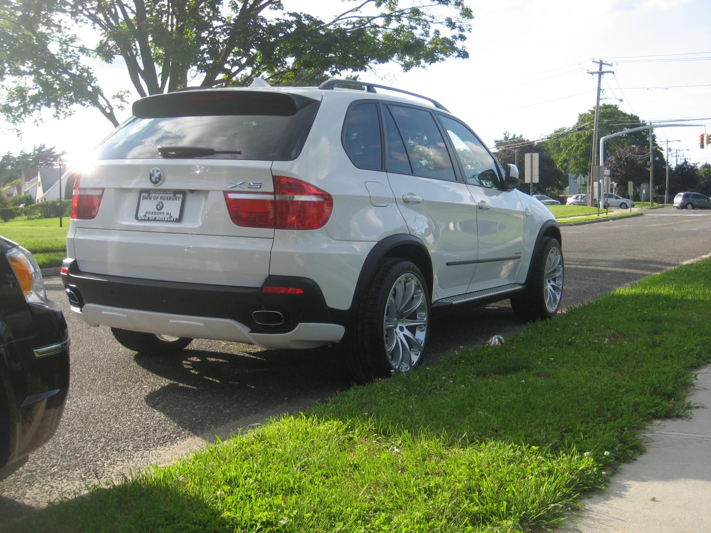 '08 X5 3.0si - Alpine White / Saddle Brown interior Specs: Sport Pkg, Premium Pkg, Tech Pkg, Comfort Access, Aero Kit, Style 433 staggered 20s on Conti DWS Mods: Carbon 35 tint, LED angel eyes, GP Thunder 7500k fogs, H&R 20mm/25mm spacers, clear reflectors, gunsmoke-tinted taillights Coded: Digital speedo, windows/sunroof/tailgate close via keyfob X5 pics at Flickr |