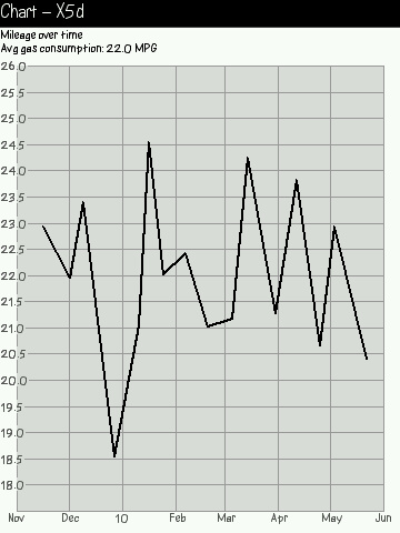If we assume that the BMW 19/26 city/highway mpg claim is 100% accurate. And your driving mix is 50% City and 50% Highway the AVERAGE would only be 22.5 mpg. At 30/70 it climbs to 23.9 mpg At 25/75 its 24.25 mpg And even at 10/90 its still only 25.3 IOW it would be nearly impossible to get much better than a long term average of 25.3 mpg, unless a 35d was used almost exclusively for road trips. Even then you have to stop for diesel every 500 miles or so. And some wusses even stop for food, lodging, etc. even though it reduces their avg mpg ![]() I'll post an updated graph RSN that show that my long term average mpg is still getting better, even though we're still regularly using the 35d for towing. ![]() Funf Dreisig Last edited by FunfDreisig; 06-10-2010 at 08:19 PM. |