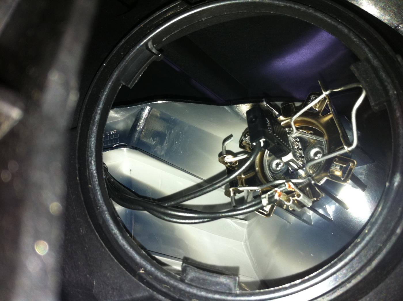 I have a MY11 E70 There are two caps to access the head lights on each side. Front one has a cap that screws off, and the back one has a clip at the top and flips open then comes off completely. From the pictures posted earlier in the thread it looks pretty obvious that it is the front cap that needs removing. Inside i can only see the bulb that powers the highbeam??? The clips on the back of this bulb do not match up with the clips on the Lux Please help Thanks |