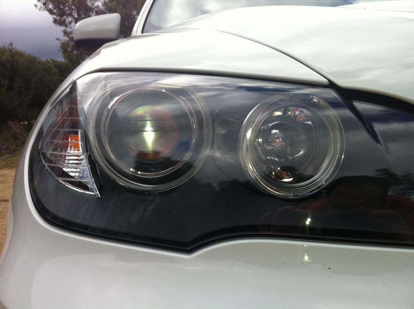 From what I can tell you DON'T have HID headlamps. In Australia (and someone can correct me if Im wrong) if you had HID headlamps you would also have the headlamp washer as they are sold together as a package. You have HALOGEN headlamps and they are put together completely differently. What you're seeing is the high beam lamp behind the screw cap. Halogen headlamps use a weird looking LED unit to light the Halo. Its extremely hard to access and is located inside a square little box somewhere between the Low & High beam. Basically a NUT BUSTER ! Here's a thread which discuss's the whole topic. http://www.xoutpost.com/bmw-sav-foru...x5-2008-a.html Cheers Kman |