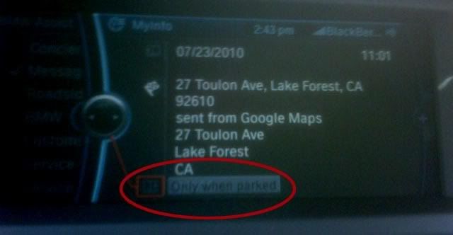 I use this to drive around to a lot of Open Houses and while on Google, I can add notes to the address where I type (for example) Open House Saturday 1p - 4p. However, once I go to the messages on the iDrive, when I access the address I can see the address and set it as my destination fine, but I'm unable to read/open the notes I have written. It's really frustrating because there is a little notepad icon there at the bottom and it seems like I should be able to read the notes by clicking on that icon, but it is greyed out and when I press it, it says "Only When Parked". I've tried it while in Park, with the Parking Brake on, and it still says "Only When Parked". I've tried a combination of those as well with no luck.