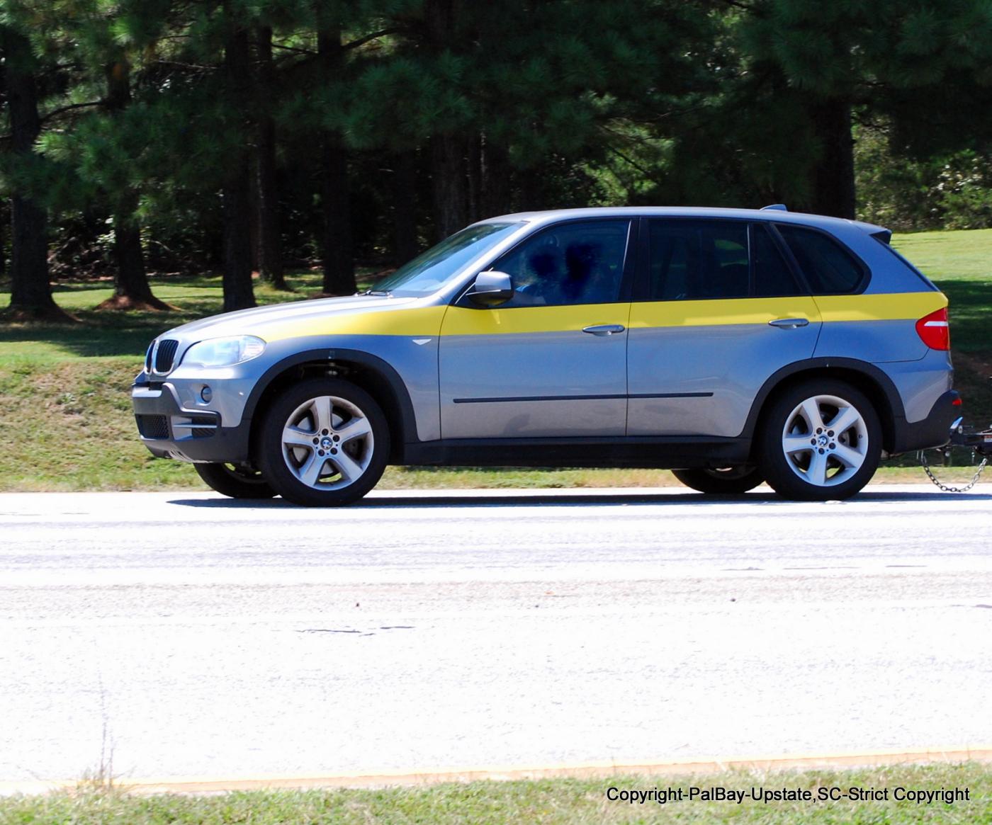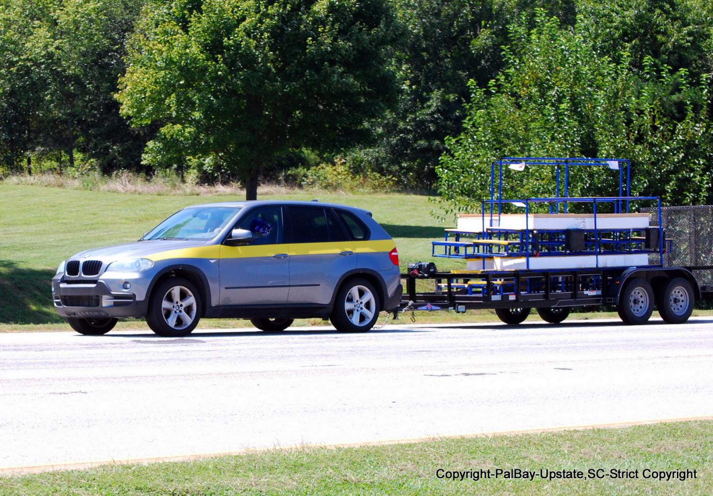 Another case of.... I'm not really sure what this is.At first glance it looks like a mundane towing limits test for an X5.But the pic's beg a few questions.This is the E70 model prior to the LCI refresh.Unbadged and no tag at all.No tag means no extended over the road testing.Between Plant gates (this X5 did in fact drive between two plant gates) and on Plant grounds.If testing engine/chassis tweaks for the current LCI X5 wouldn't you use the series production model and NOT an out of production model X5??? In all the years I've been shooting pic's...I've never before seen a towing test conducted around the Plant.I'm not around 24/7...but you would think that I would have crossed paths with a towing test prior to this.I've seen the early test mules in Death Valley conducting towing test but nothing around the Plant.This X5 was moving very,very slow...maybe 5-10 MPH.Just wondering if this vehicle is conducting some early powertrain testing for the coming F40 due in 2013.No reason I can think of to be certifying towing limits on an out of production X5 model.Interesting to say the least.Maybe there is a simple explanation....I'm stumped.Thanks. PalBay