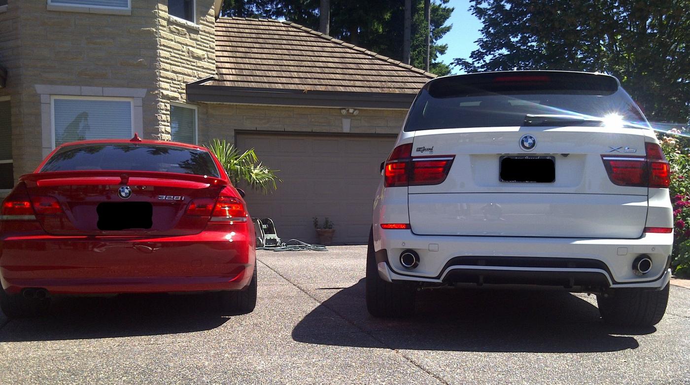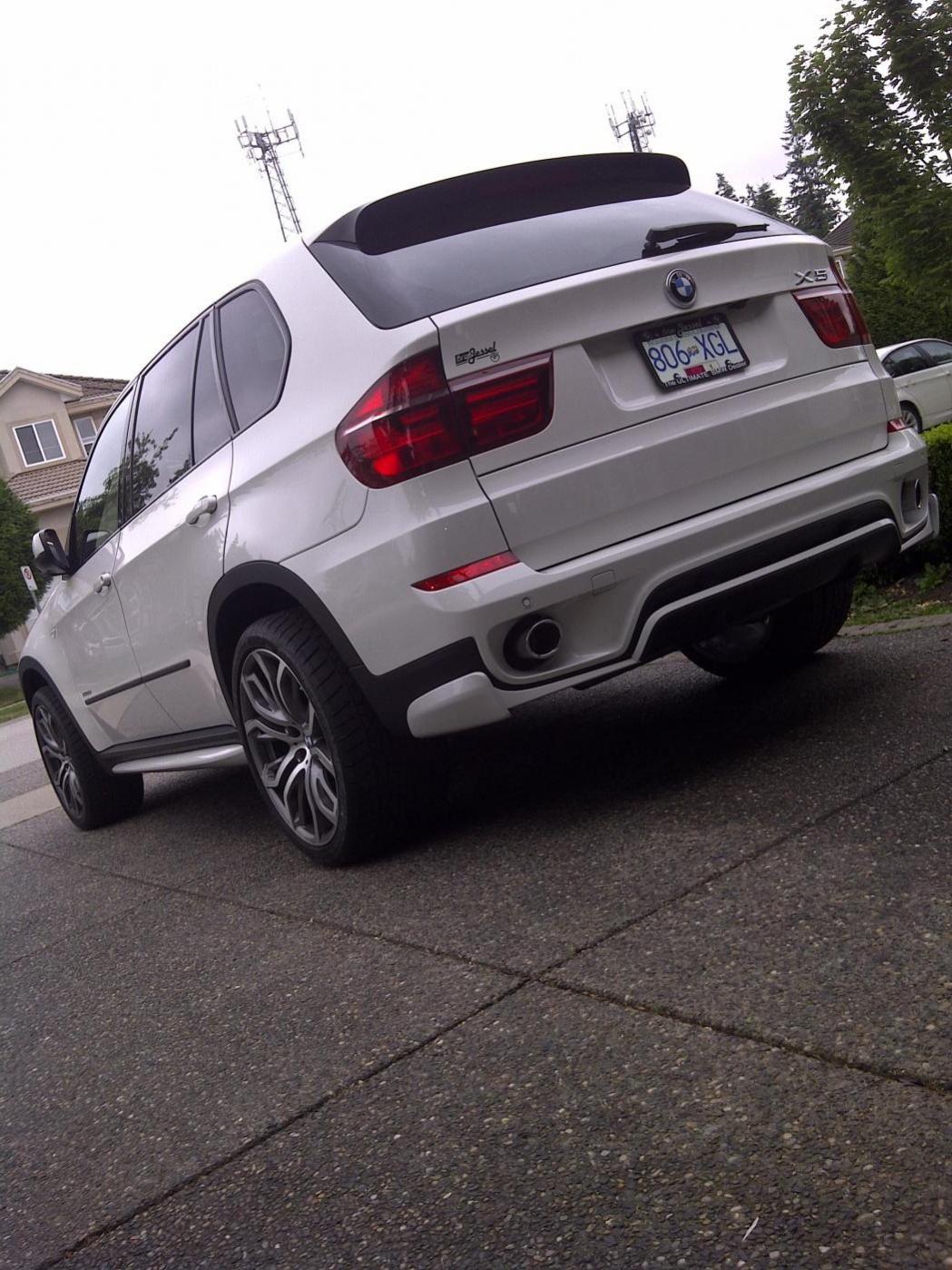 '08 X5 3.0si - Alpine White / Saddle Brown interior Specs: Sport Pkg, Premium Pkg, Tech Pkg, Comfort Access, Aero Kit, Style 433 staggered 20s on Conti DWS Mods: Carbon 35 tint, LED angel eyes, GP Thunder 7500k fogs, H&R 20mm/25mm spacers, clear reflectors, gunsmoke-tinted taillights Coded: Digital speedo, windows/sunroof/tailgate close via keyfob X5 pics at Flickr |