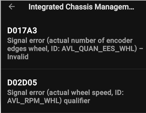 This is the only error codes I was able to retrieve. I believe it could point to ABS speed sensors on the wheels.