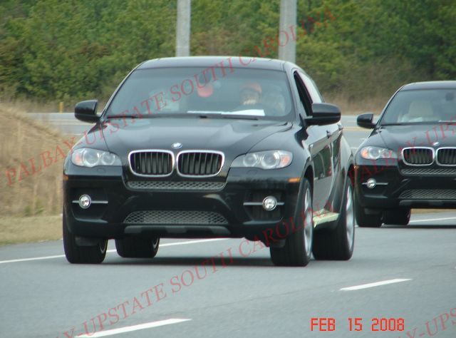 My favorite stop sign produced a few good shots.One of the Red X6's is a right hand drive version.The first I've spotted.The other Red X6 at the stop sign is my ole friend the XDrive 50i I caught going into the Special Vehicle Ops Bld.Note the Silver Grille and the Silver trimwork around the windows.In the far shot at the traffic light you can (barely) see the rectangle exhaust tips.This 50i continues to be the only V8 I've seen anywhere.It makes me believe the 50i production will be pushed into late 2008.The shots of the X6's on the way to the airport might help people understand the size of the X6.The two X6's coming toward me have a Mini sandwiched between them.The Black X6 turning at the traffic signal is following a Mini Clubman.The line of cars at the stop sign on the airport property include a Mini Clubman,a couple of 3 Series and an X5.The X6's are still being staged at the lot at the airport.The mix seems a little different,less X6's,and more of some other BMW makes.Will try and catch them loading so I can get some upclose shots of some diffferent color X6's.That's all for now. Thanks! PalBay