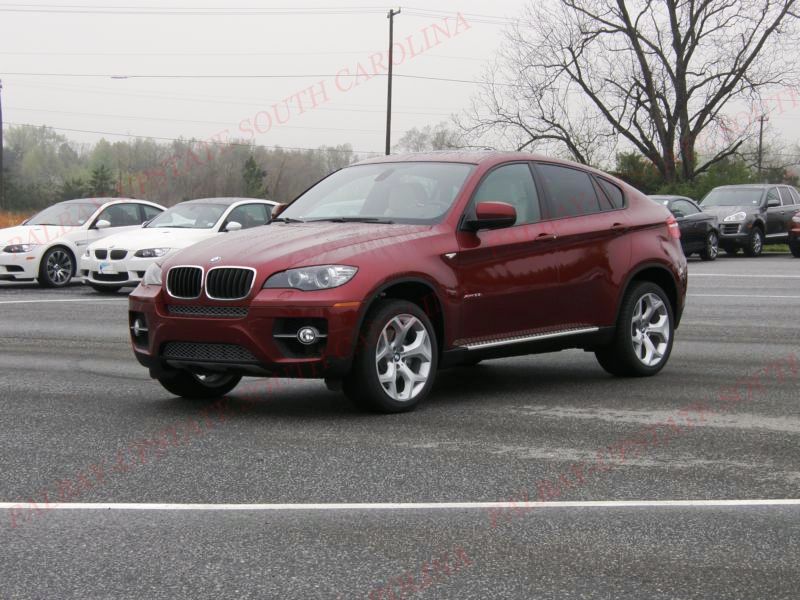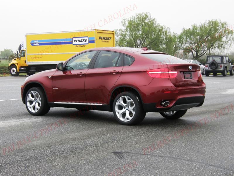Here are the pic's from the Press Launch.I just did a walkaround and shot all 4 sides of the car.I realize some people have now had a chance to see the X6 in person,but many have not.Just for perspective,it was rainy ( you can see the rain on the car) and overcast.With all of these shots I did not use a flash.This X6 had the Sport Package ( the only way to get the 275 Front-315 Rear Y Spoke 20's).Kneeling down close the tires they are massive.But from the distance I was shooting the pic's they appear not to fill up the wheel wells on the X6.Some days I think the running boards add something to the bottom end of the X6,some days I think it makes the X6 look to " SUVEE'E". New word there...