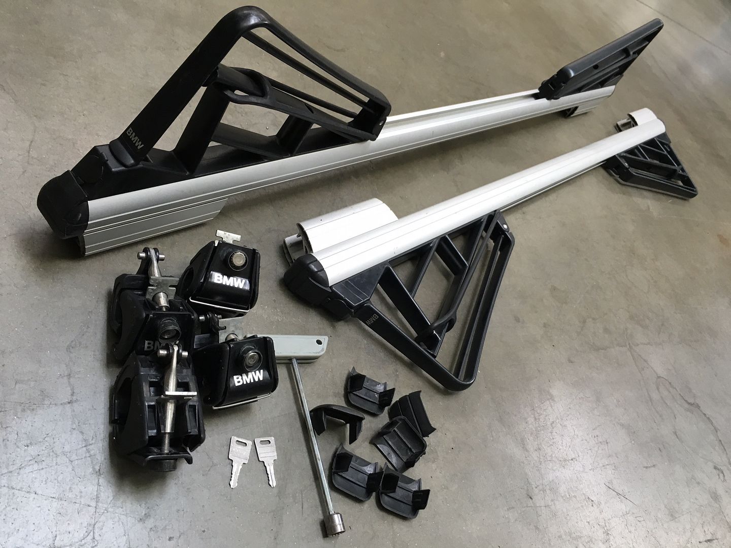 I'm selling a used set of BMW base rails with 2 pairs of snowboard attachments. Will fit 4 snowboards total. I had them on my E53 and used them for probably 8 trips. Everything is in perfect working order, no missing parts. 2 keys and tools included.