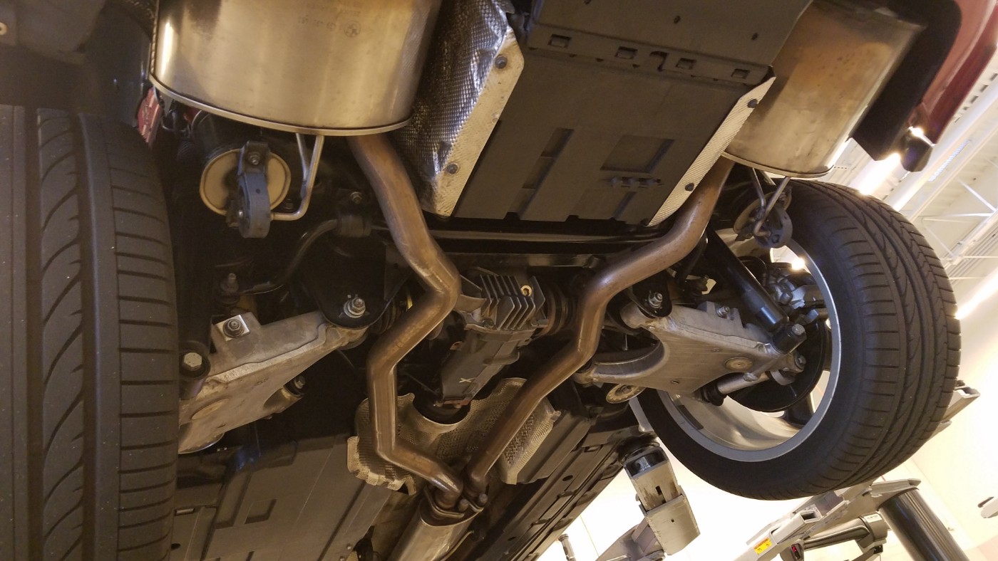 This is back when I bought my wife's X5 when we ran a business together in Chicago. Hers had the entire subframe and suspension out of it for a rebuild. Mine has never been apart nearly that far. In this pic, her car was fresh off the lift so the suspension may not have settled entirely. At least this is a good reference photo. Hers is the one in front. Possibly also for sale.