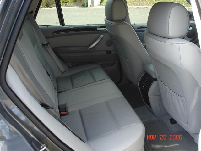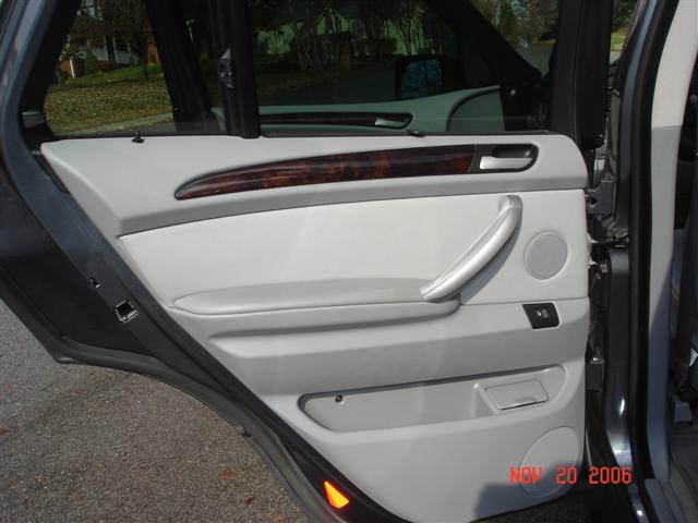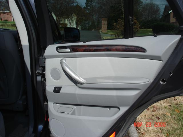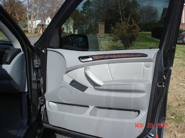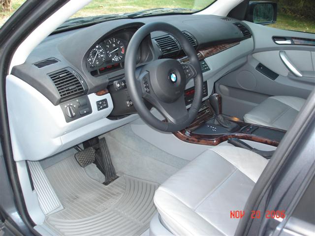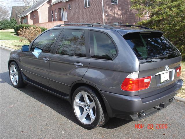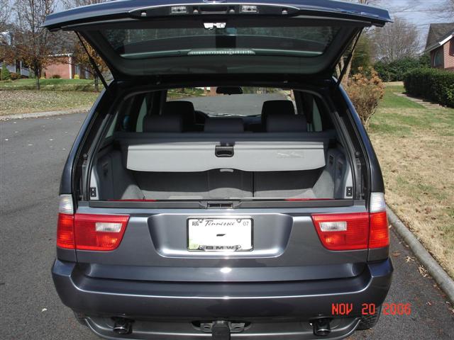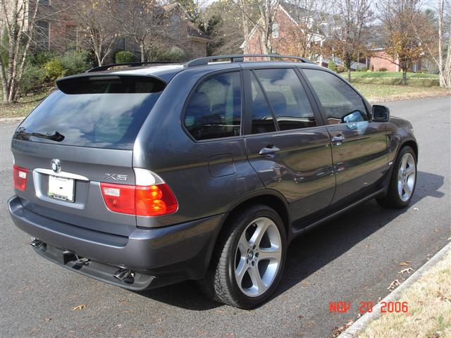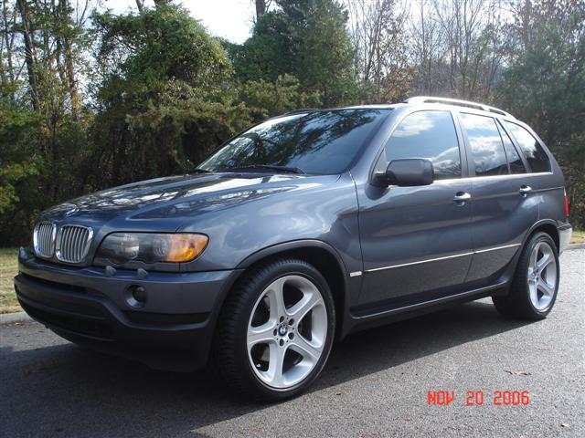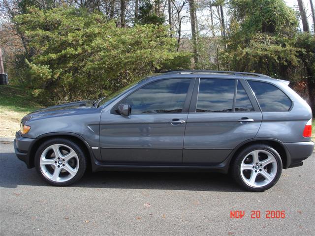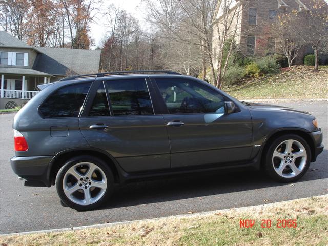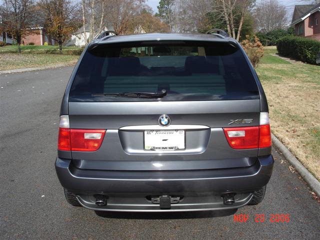 Here is the description and pics: Color - Steel Gray Metallic with Gray leather interior Options - 100% Options (Roof rails, smoker's package, center armrest, in-dash CD player, hi-fi sound system, CD holder, full-size spare tire; COLD WEATHER PACKAGE - ski bag, heated front seats, retractable headlight washers; PREMIUM PACKAGE - body colored door handles, glass moonroof, power front seats, rear seat back adjustment, rain sensor and auto headlight, automatic air conditioning, on-board computer; REAR CLIMATE PACKAGE - rear sunshades, rear passenger temp control, privacy glass. Automatic transmission ADJUSTABLE RIDE HEIGHT - VERY RARE on a 3.0i SLIDING LOAD FLOOR DARK WOOD TRIM LUMBAR SUPPORT XENON HEADLIGHTS BMW OEM Tow Hitch Aftermarket extended warranty that is transferable to buyer BMW EXTENDED MAINTENANCE WARRANTY until 11/30/2007 or 100,000 miles that is transferable to buyer also. I bought this X5 on July 23, 2005 with 63,500 miles on it. It now has 71,352. I have only put 7,852 miles on it since July 23, 2005. I only drive it when it is nice outside. The windshield wipers have only been used 1 time in this time period. I keep this car immaculate at all times and garaged. I have never babied a car like this before - even my BLACK ///M3 ! List of mods I have done: 1. OEM Style 87 wheels added 12/05 - only 2,500 miles on them. Still could pass as brand new. ($4,000 MSRP - I paid $3,760 + tax from dealer) 2. OEM Titanium Hood Grilles 3. OEM Titanium Liftgate Handle 3. OEM Chrome Exhaust Tips 4. OEM White Sidemarkers 5. OEM White Tail Lights (with stealth bulbs - no yellow showing) 6. OEM White 3rd Brake Light (with red LED's when on) 7. OEM Rubber All-Weather Floormats 8. 2006 Sport Steering Wheel 9. DINAN Stage 1 Engine Software Upgrade 10. DINAN Stage 1 Transmission Software Upgrade 11. Front Windows professionally tinted to match the rear privacy glass 12. K & N Air Filter If I sell it with all mods - including the original wheels - I am asking $26,500. If someone would like to talk numbers without some (or all) of the mods, I would be willing to put the original items back on, except the steering wheel and airbag. I paid $100 to have the 2006 Sport Wheel put on at my dealer. Please feel free to call, e-mail, or PM me with any questions at any time concerning this vehicle. It is a very nice, well taken care of X5 and looks like there is 10,000 miles on it. It was sold locally here at Grayson BMW in Knoxville, TN and has always been here in Knoxville - VERY mild climate and an average of 1 snow per year. I am the 2nd owner of this X5. I have all manuals and paperwork for the warranties, receipts for my mods, etc. Christopher Miller [email protected] 865-603-2323