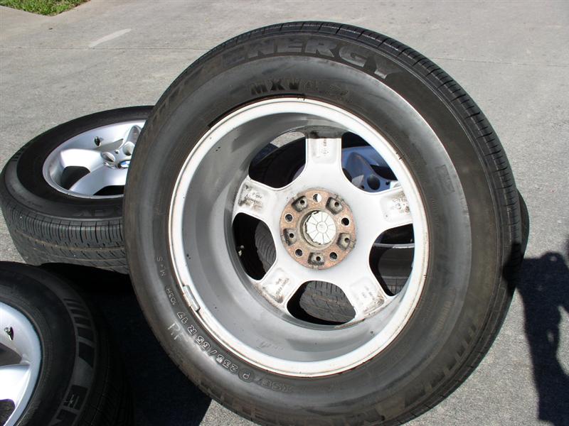 I have 4 OEM Style 57 wheels with Michelin MXV4 tires with approximately 60-65% tread life left. The wheels are in good condition with no curb marks. They are not perfect, but they are in very good condition. I didn't have time to detail the inside, but they cleaned up pretty good. My X5 stayed in TN since new so, these wheels have probably been through 2 snows since 2002. This would make someone a great winter setup too. I am asking $425.00. If you have any questions, feel free to post or PM me on here. Thanks & I have missed this place!!!