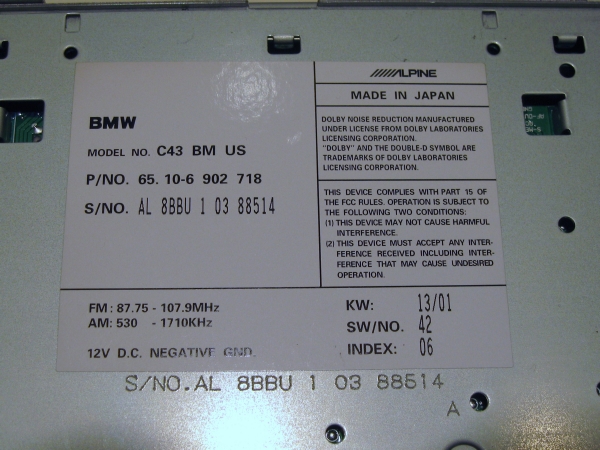 I have an OEM BMW Navigation Radio from my 2001 X5 w/Nav, in perfect condition. Payment to be made thru Paypal . Build date of my X5 was 06/01. This radio works perfectly (and was only removed in order to upgrade car to Sirius Sat).